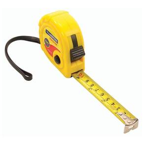 Características do produto: Fita em aço temperado. Graduação em milímetros e polegadas. Corpo em plástico ABS. Trava para fixar a fita métrica. Cinta para facilitar o transporte. Freio duplo. Fita com 3 rebites para maior segurança. Todas as ferramentas de medição são inspecionadas e verificadas para manter um alto nível de precisão. As ferramentas são submetidas a testes de aplicação prática para garantir sua resistência em uso intenso. As ferramentas são produzidas e testadas conforme normas específicas. Use óculos, luvas e outros equipamentos de proteção de acordo com a tarefa a ser executada. Mantenha a ferramenta sempre limpa para um melhor agarre, pois usála suja com graxa ou óleo pode causar acidentes. Armazene em local limpo e seco.