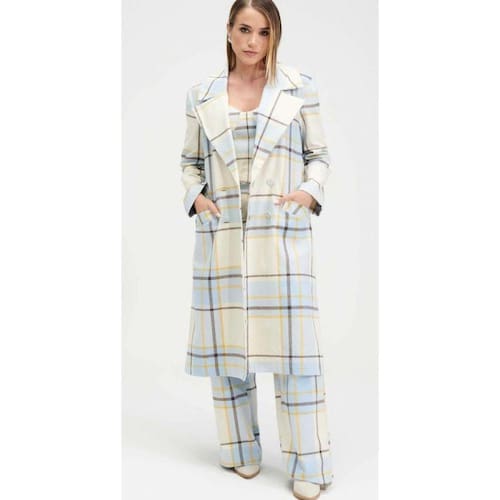 O trench coat em modelagem super midi é uma peça-chave para o seu closet. Tem estampado xadrez, além de bolsos, mangas longas e gola camisa. Use com sobreposição.