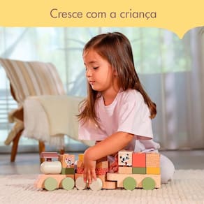 Trenzinho de Madeira Boho Chic - Tiny LoveO Trenzinho de Madeira da Tiny Love é uma adorável composição de 14 blocos empilháveis, acompanhados por encantadores personagens da exclusiva Coleção Boho Chic e 3 vagões interconectáveis. Este brinquedo não apenas proporciona diversão, mas também estimula a criatividade e a coordenação motora fina das crianças.Características: 14 Blocos Empilháveis: Os blocos foram projetados para empilhar de maneiras diversas, permitindo que o seu pequeno experimente várias opções de montagem, moldando um novo trem a cada brincadeira. Lindos Personagens Boho Chic: Apresenta personagens encantadores da Coleção Boho Chic, enriquecendo o universo visual do trenzinho e proporcionando uma experiência estética única. 3 Vagões Interconectáveis: Os vagões são projetados para serem facilmente conectados, estimulando a criança a explorar diferentes combinações e criar seu próprio trenzinho personalizado.Design Moderno e Sustentável: Feito em Madeira: O trenzinho é confeccionado em madeira de alta qualidade, proporcionando durabilidade e uma sensação natural ao toque. Cores Suaves em Tons Terrosos: Com um design moderno e cores suaves em tons terrosos, o trenzinho adiciona um toque de tranquilidade a qualquer ambiente. Estimula o Desenvolvimento Infantil: Além da diversão, este brinquedo contribui para o desenvolvimento cognitivo, a coordenação olho-mão e as habilidades motoras das crianças.Compromisso com o Desenvolvimento Infantil e a Sustentabilidade Ambiental: Sistema de Desenvolvimento Único: Desenvolvido por especialistas em desenvolvimento infantil, o sistema da Tiny Love foca em 6 habilidades essenciais, promovendo o crescimento saudável em cada estágio da jornada do bebê. Certificação FSC e Sustentabilidade: Certificado FSC garante a origem ética da madeira, proveniente de florestas geridas de forma responsável. Embalagens sem plástico desnecessário, compactas e recicláveis, demonstram o compromisso com a natureza.O Trenzinho de Madeira da Tiny Love é uma oportunidade para as crianças explorarem, criarem e aprenderem enquanto se divertem. Seja empilhando, conectando ou imaginando histórias, este trenzinho oferece uma experiência envolvente e educativa. Ean: 7290108863017