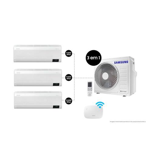 Ar Condicionado Split Inverter WindFree Connect Controle até o Vento Resfriamento no Modo WindFree Sem vento Ao toque de um botão, tenha o máximo de conforto eliminando as correntes de vento geladas do seu ambiente. A Tecnologia WindFree mantém a temperatura ideal e dispersa o ar por meio de 23.000 microfuros gerando uma sensação mais agradável para você e sua família. Mais economia No modo WindFree , o compressor Digital Inverter garante uma eficiência energética ainda melhor e consegue atingir uma economia de até 77% de ene rgia comparado aos modelos convencionais . Além disso possui 10 anos de garantia no compressor e é mais Único com controle de gastos de energia Tenha o controle total dos gastos e consumo de energia emtempo real dos seu ar condicionado com a nova função SmartThings Energy Controle de qualquer lugar e com comando de voz Utilizando o app SmartThings , é possível ligar e desligar o WindFree Connect e controlar a temperatura. Tudo isso é possível também por comandos simples de voz . Compatível com Bixby , Amazon Alexa e Google Assistente Resfriamento 43% mais rápido Com um design que tem maiores aberturas aliado ao poderoso compressor Digital Inverter, o ar climatizado alcança até 15m de d ist ancia em linha reta, em menos tempo, resfriando o ambiente até 43% mais rápido. Filtro Antibacteriano poderoso Filtro lavável que mantém o ar fresco e garante a limpeza da parte interna da unidade. Além de coletar pó, ele elimina até 99 % d e bactérias ao passarem por uma densa malha de filtro antibacteriana Freeze Wash Esterilize seu ar condicionado congelando 90% das bactérias do interior, diretamente pelo controle remoto ou SmartThings