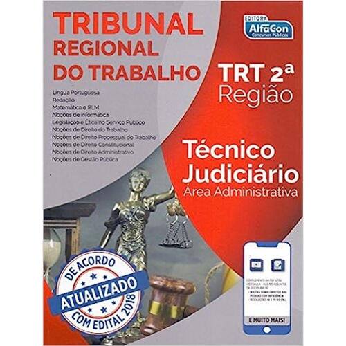 A obra contempla as disciplinas exigidas no edital publicado em abril de 2018. O material didático apresenta teorias explicativas, dicas, e ao final de cada capítulo, o aluno tem a oportunidade de praticar o que aprendeu, com exercícios acerca dos conteúdos propostos. O concurso do trt 2 Região está com edital aberto para o cargo de técnico judiciário área administrativa A exigência para participação no concurso é possuir Ensino Médio completo. A banca organizadora deste concurso é a fcc, Fundação Carlos Chagas. Conteúdo Programático: Língua Portuguesa Redação Matemática e rlm Noções de Informática Legislação e Ética no Serviço Público Noções de Direito do Trabalho Noções de Direito Processual do Trabalho Noções de Direito Constitucional Noções de Direito Administrativo Noções de Gestão Pública. Conteúdos abordados: Língua Portuguesa; Redação; Matemática e Raciocínio Lógico-Matemático; Noções de Informática; Noções de Direito do Trabalho; Noções de Direito Processual Penal do Trabalho; Noções de Direito Constitucional; Noções de Direito Administrativo; Noções de Gestão Pública;