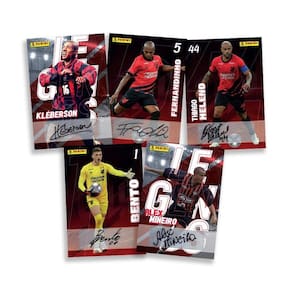 O centenário já pode ser celebrado em grande estilo! O conjunto oficial Tribute Card Set do Athletico Paranaense, lançamento da Panini, é composto por 50 cards incríveis. Estes cards trazem o elenco atual do Furacão, a mascote da equipe e os 10 momentos mais marcantes de toda a trajetória do time, para serem relembrados com a emoção merecida. E não é só isso: o conjunto de cards homenageia também 6 jogadores lendários que fizeram história em campo vestindo a camisa rubro-negra, com acabamentos especiais metalizados.