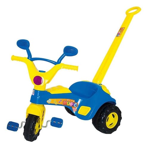 O Triciclo Infantil Blue Music com Haste 1832, vai fazer a alegria das crianças e dos pais durante um passeio em família, possui uma haste que permite que os pais conduzam a criança e pode ser removida com facilidade. Além disso, conta com porta acessórios e buzina sonora para a criança se divertir ainda mais com o triciclo. Alimentação: Bateria: G13 / Lr 44 Peso suportado aproximado 19Kg As cores desse produto podem sofrer mudanças nas ordens em comparação com a imagem apresentada. Itens inclusos: 01 Triciclo Infantil Blue Music