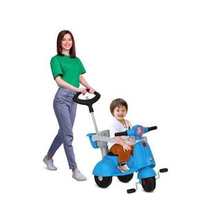 Um produto com duas funções, prático e moderno para o adulto e divertido para as crianças! Função passeio: o adulto utiliza a haste direcionável para conduzir a scooter. Basta destravar o dispositivo de roda livre, colocar o cercado de proteção e apoio dos pés. Função pedal: permite à criança pedalar livremente como um triciclo convencional. Basta travar o dispositivo de roda livre, remover a haste, o cercado e o apoio dos pés. Haste direcionável e removível; Dispositivo de roda livre: Transforma o pedal em apoio para os pés da criança enquanto o triciclo é movimentado; Assento anatômico confortável, com baixa distância do solo e altura ideal para a criança subir e descer de forma fácil e segura. Apoio traseiro anatômico; Apoio para os pés removível: mantém os pés da criança apoiados confortavelmente; Rodas com anel de proteção;