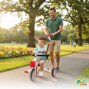 Triciclo Infantil com Empurrador 4 em 1 Bicicleta Equilíbrio Sem Pedal Beep Vermelho Maxi Toys Uma escolha inteligente para quem busca qualidade, praticidade e momentos inesquecíveis com os pequenos, acompanhando seu desenvolvimento de forma divertida e segura O Triciclo Beep da Maxi Toys foi criado para transformar os passeios em momentos de pura diversão com total segurança. Com design moderno, ele combina praticidade para os pais e muito conforto para as crianças, sendo perfeito para acompanhar cada fase do crescimento. Para oferecer tranquilidade no dia a dia, o triciclo conta com empurrador com altura ajustável e manopla anatômica, que garante firmeza e leveza ao conduzir. A capota ajustável protege contra o sol, enquanto o assento ergonômico com encosto, ajustável e giratório em 360, proporciona ainda mais conforto e permite que a criança tenha visão do mundo ou dos pais. Já a barra de proteção removível mantém os pequenos seguros durante o uso. Além disso, o Triciclo Beep é modular e evolutivo, podendo ser transformado de acordo com a idade e habilidade da criança. Ele pode ser como triciclo com capota e barra de proteção, triciclo com empurrador, triciclo sem empurrador, e até mesmo como uma bicicleta de equilíbrio, garantindo diversão e aprendizado em cada etapa do desenvolvimento. E para deixar os passeios ainda mais práticos, ele possui um cestinho frontal, ideal para carregar garrafinhas, brinquedos ou pequenos objetos. Com rodas resistentes, estrutura firme e um acabamento que une durabilidade e sofisticação, o Triciclo Beep foi projetado para acompanhar as crianças em todas as etapas: desde os primeiros passeios conduzidos pelos pais até a conquista da independência ao pedalar sozinhas. Mais do que um brinquedo, o Triciclo Beep é um verdadeiro aliado da família, estimulando a coordenação motora da criança e garantindo passeios agradáveis, seguros e cheios de estilo Principais Características: - Idade recomendada: A partir de 2 anos - Peso máximo suportado: 25kgs - Modular e evolutivo - Acompanha todas as fases até 25kg - Vira Bicicleta de equilíbrio sem pedal - Possui cestinho porta garrafa/objetos - Manopla anatômica - Empurrador ajustável removível - Capota ajustável removível - Assento ergonômico ajustável - Assento giratório 360º - Encosto Removível - Rodas resistentes - Estrutura leve e resistente - Design Moderno e Sofisticado - Estimula a coordenação motora e equilíbrio - Aprovado pelo Inmetro Especificações Técnicas: - Conteúdo da Embalagem: Triciclo Infantil com Empurrador 4x1 Beep Maxi Toys - Dimensões do Produto AxLxP : 92,0 x 45,0 x 93,0cm - Composição/Material: Metal, Plástico, EVA e Tecido - Peso do Produto: 6,100 - : 90 dias Contra Defeitos de Fabricação Pelo Fabricante - Certificação: Inmetro IN1809523 003848/2023 - Código do Fabricante: 21931 - EAN: 7899403219316 - Marca: Maxi Toys Imagens Meramente Ilustrativas. As cores e estampas podem variar de acordo com o lote do fabricante. Homologação Inmetro: CE-BRI/IQB 006415 54629/21-001