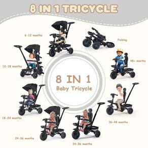 - [Design versátil 8 em 1]: de um triciclo de carrinho de bebê a um triciclo clássico para bebês, este triciclo tem capacidade de ajuste 8 em 1 e pode ser convertido em vários modos para atender às necessidades de seu filho em diferentes estágios de desenvolvimento. Também possuem um assento giratório de 360°, os triciclos de pressão para crianças de 1 a 3 anos permitem que seu filho vire direções diferentes enquanto dirige.