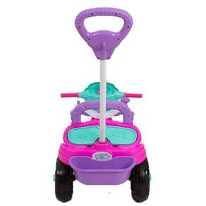 O baby city menina é um triciclo divertido e seguro tanto para passeios quanto para pedaladas. ele possui suporte de proteção para os pés e haste direcionável para empurrar, permitindo que o veículo seja controlado pelos pais e, quando a criança estiver pronta para pedalar, a proteção para os pés e a haste podem ser removidos. para garantir a segurança, o baby city conta com aro de proteção, além de ajudar a desenvolver senso de direção.idade recomendada: 9 meses.peso máximo suportado: 30 kg.material das rodas: plástico.possui haste direcionável.emite sons de buzina.altura do produto com haste: 105 cm.dimensões do produto cm - a x l x c: 45 x 43 x 93 cm.dimensões com embalagem cm - a x l x c: 48 x 49 x 78 cm.peso da embalagem com produto kg : 5,880 kg.certificação do inmetro: cebri/innac 0087701a nm 300/2002.