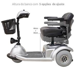 Scooter Triciclo Elétrico Cadeira de Rodas Motorizada Freedom Mirage SX com Ré e Braços Articulados, Cadeira Giratória, Farol, Trava nas Rodass e Cinto de Segurança.