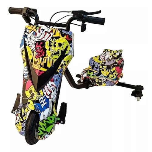 Carenagem frontal e banco feitos em plástico reforçado com pinturas em cores vibrantes e coloridas, este triciclo elétrico vai encantar os olhos dos pequenos e tornar cada passeio uma experiência emocionante, suspensão em molas para o banco para menor tensão e maior estabilidade ao sentar-se enquanto pilota. Além de apoios emborrachados para descanso dos pés.