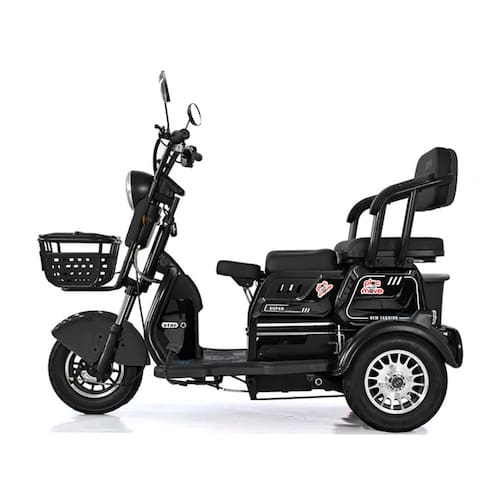 2 modos de uso: modo singular e modo passageiro com 3 lugaresPainel digital com: indicador de nível de bateria, hodômetro, velocímetro e modos de velocidadeAcionamento por cartão NFC: tecnologia que permite ligar o triciclo por aproximaçãoSuporte para celular e carregador USBCaixinha de som bluetoothMarcha ré: com acionamento por botãoPorta-objetos de fácil acessoBagageiro traseiro com chaveCesto frontalRetrovisores