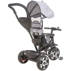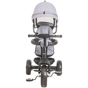 Triciclo Giratório 360° Melange Grafite 521 Kiddo Características: Triciclo Giratório Assento Giratório 360°. Capota removível. Porta objetos. Pedais de locomoção e pedais de apoio. Assento e encosto anatômico. Freios. Haste para facilitar o passeio. Estrutura em metal. Funções carrinho e triciclo. Para crianças maiores de 12 meses. Limite de peso: 25 kg. Dimensões do produto: 97 x 50 x 80 cm. Certificação: nbr NM 300 sob registro no 0144/20-7.
