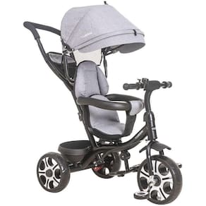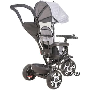 Triciclo Giratório 360° Melange Grafite 521 Kiddo Características:Triciclo Giratório Assento Giratório 360°. Capota removível.Porta objetos.Pedais de locomoção e pedais de apoio.Assento e encosto anatômico. Freios.Haste para facilitar o passeio.Estrutura em metal.Funções carrinho e triciclo.Para crianças maiores de 12 meses.Limite de peso: 25 kg.Dimensões do produto: 97 x 50 x 80 cm.Certificação: nbr NM 300 sob registro no 0144/20-7.