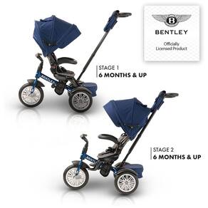 OFICIALMENTE LICENCIADO E PROJETADO PELA BENTLEY MOTORS UK Este triciclo 6 em 1 faz uma declaração ousada onde quer que você vá. Ele se transforma de um triciclo infantil em um triciclo infantil grande à medida que seu bebê cresce dos 6 meses aos 5 Anos.