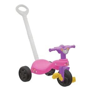 Ótima opção de aprendizado e brincadeira é o Triciclo Infantil Baby Encantado. Multifuncional ele pode ser utilizado nas funções Passeio ou Pedal. Na função Passeio o adulto consegue empurrar o triciclo, por meio da haste não direcionável . A haste de guia é plástica e de fácil remoção. Com apoio de pés e anel de proteção. Já na função Pedal retirando a haste, apoio de pés e o anel de proteção , a criança pode pedalar e brincar sozinha desenvolvendo o senso de direção e coordenação motora. Tem um visual super alegre e fofo na cor rosa com lilás. Um ótimo presente para que seus pequenos tenham mais diversão em seu desenvolvimento