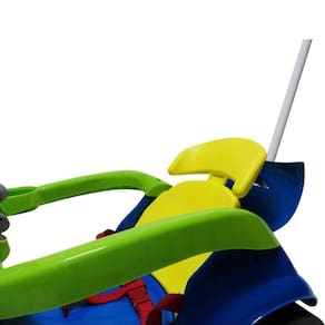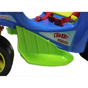 Sou o Baby Trike Evolution Vou te proporcionar divertidos passeios com sua família. Desde os 12 meses de idade você poderá desfrutar momentos de alegria. Quando o soninho chegar, conseguirá deitar e dormir tranquilamente com conforto e segurança e ao chegar a hora de pedalar, você irá se divertir sozinho Ele possui rodas largas com calotas e faixas de rodagem em relevo, apoio confortável removível para os braços com conjunto didático, e também, contém porta mamadeira, apoio para os pés removível com proteção, haste articulada removível em aço carbono resistente com porta copo e gancho para pendurar sacolas e encosto de cabeça regulável.