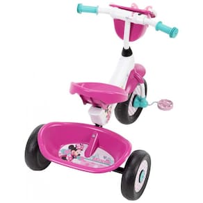 Trike para meninas: Ideal para crianças a partir de 3 anos com peso máximo de 27KG. Estilo fofo: a Minnie Mouse da Disney decora a estrutura do triciclo infantil de aço branco rodas de plástico apresentam bolinhas rosa cesta de guidão rosa com laço da Minnie Conveniência: O compartimento de zenamento traseiro e o compartimento frontal do guiador permitem que o seu filho leve brinquedos para o passeio Design estável: Três rodas de plástico e estrutura e garfo de aço fortes garantem um passeio estável para o seu filho apoiado por garantia vitalícia limitada do quadro Marca: Não Informado