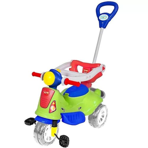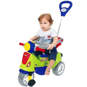 O Triciclo Infantil Avespa na Versão Extreme traz design robusto e arrojado, pensado para crianças cheias de energia. O anel de proteção com barra adicional garante a segurança necessária nos primeiros meses de uso, enquanto a haste direcional com gancho traseiro permite que os responsáveis conduzam com facilidade e praticidade.