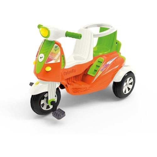 Triciclo Infantil Moto Dupla Duo 2em1 Calesita até 50 KgPrepare-se A aventura sobre três rodas vai começarOs pequeninos irão acelerar rumo a diversão com a nova moto da Calesita.A Moto Duo é um triciclo dois em um, para passear ou pedalar.E para dobrar a diversão, possui dois lugares com aros protetores independentes, para combinar crianças de idades diferentes.Vem com farol que acende e som para estimular a imaginação.A Moto Duo possui cores divertidas para o passeio com o irmãozinho.Para a versão passeio acompanha o empurrador, aro protetor e apoio de pés removível, fácil de encaixar.E para sair pedalando, basta retirar os acessórios.Então a moto está pronta para que os pequeninos explorem o passeio e sintam no rosto o vento com a Moto Duo.Calesita, brincadeira de verdade. Contém1 Moto Duo2 Aros protetores1 Par de apoio de pés1 Haste / 1 Empurrador1 Manual de instrução2 Capacetes de BrinquedoHabilidades desenvolvidas:Compreensão de causa e efeitoCoordenação entre olhos e mãosCoordenação entre olhos e pésCoordenação motora grossa - braços e pernasIndicação:1-3 anos12M+ para passear24M+ para pedalarSuporta até 50 Kg