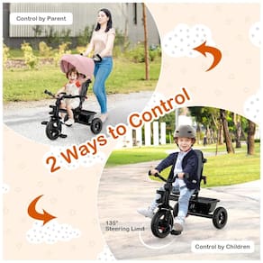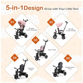 Triciclo 5 em 1 para crianças Projetado com dossel removível, almofada de assento, apoio para os pés, corrimão e alça de empurrar, este triciclo para crianças de 1,5 a 5 anos pode ser transformado em 5 modos diferentes carrinho face interna ou externa, empurrar trike, trike de treino e trike independente que cresce com o seu pequeno em diferentes fases. Face Inside Fade Outside Com um assento reversível, este triciclo infantil não apenas satisfaz a curiosidade da criança sobre o mundo exterior, mas também permite que os pais fiquem de olho nos bebês facilmente. Não importa se está de frente para dentro ou para fora, o dossel de proteção solar pode ser ajustado em 3 posições para bloquear efetivamente a luz solar direta. Controle pelos pais ou filhos Há uma embreagem vermelha na roda dianteira que faz com que este carrinho de bebê triciclo possa ser controlado pelos pais ou filhos. No modo de controle dos pais, a direção é totalmente controlada pelos pais. E a alça de empurrar ajustável para levantar e descer caberá aos pais em diferentes alturas para empurrar facilmente. Projetado para segurança O cinto de segurança de 3 pontos e o corrimão removível fornecem proteção total para seus filhos evitarem paradas repentinas. Além disso, o limite de direção de 90 evita efetivamente o capotamento quando as crianças estão no controle. E os freios traseiros duplos ajudam você a parar este triciclo de empurrar para crianças no lugar Marca: Não Informado