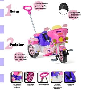 Função Pedal: basta retirar os acessórios e o triciclo estará pronto para pedalar, proporcionando uma experiência completa de aventura e emoção.