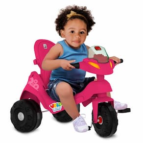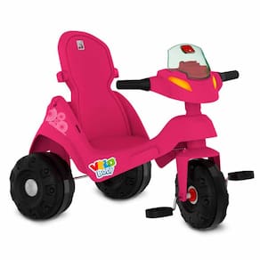 Triciclo Infantil - Passeio e Pedal - Velobaby Reclinável - Rosa-Preto - Bandeirante : o Velobaby da Bandeirante está mais prático e divertido do que nunca. Pode ser utilizado como um triciclo para os passeios das crianças ou como um triciclo de pedalar convencional. Acompanha o crescimento das crianças! Duas funções: • Função passeio: O adulto utiliza a haste direcionável para conduzir o triciclo. Basta destravar o dispositivo de roda livre, colocar o cercado de proteção e o apoio dos pés. • Função pedal: Permite à criança pedalar livremente como um triciclo convencional. Basta travar o dispositivo de roda livre, remover a haste, o cercado de proteção e o apoio dos pés. Detalhes: • Chip sonoro • Guidão com limitador de giro e porta celular • Haste direcionável e removível • Dispositivo de roda livre: Transforma o pedal em apoio para os pés da criança enquanto o triciclo é movimentado • Freio traseiro de segurança • Rodas com anel de proteção • Assento reclinável com três posições • Cinto de segurança • Suporte para garrafa d'água, mamadeira ou squeeze (no cercado) • Apoio para os pés removível: Mantém os pés da criança apoiados confortavelmente • Suporte para bolsa/ sacola (na alça da haste) • Cercado de proteção removível com painel de atividades • Capota articulável, retrátil e removível Informações: • Produto: Triciclo Velobaby Reclinável com Capota • Marca: Bandeirante • Coleção: Velobaby • Cores: Rosa e Preto • Tipo: Triciclo - 2 em 1 - Passeio e Pedal • Categoria: Miniveículos para passeio • Subcategoria: Triciclos de Passeio para Bebê • Dimensões (C x A x L): 118 x 97.5 x 56.5 cm • Peso do produto: 4,72 kg • Peso máximo suportado: até 30 kg • Conteúdo: 1 Velobaby Reclinável com Capota • Recomendação: - Passeio: a partir de 12 meses de idade - Pedal: a partir de 24 meses de idade Especificações: • Modelo: Velobaby Reclinável c/ Capota • Referência: 369 • Código de Barras: 7899091403691 • Embalagem (C x A x L): 79 X 56.2 x 55.2 cm • Embalagem (Peso): 7.9 kg • Material / Composição: Plástico Reforçado • Registro: 003833/2021 OCP - 0061 • Certificado: Órgãos Autorizados - OCP´S (Organismos de Certificação de Produtos) Aviso: • As imagens são meramente ilustrativas • Os pesos, tamanhos e medidas são aproximados • As cores e estampas dos produtos podem ter variações • As informações são de responsabilidade do fabricante ou fornecedor