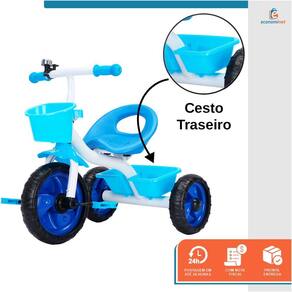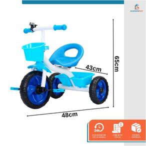O Triciclo Jony é o companheiro perfeito para crianças de 1 a 3 anos, proporcionando uma divertida e emocionante experiência de passeio. Projetado com cuidado e segurança em mente, este triciclo é capaz de suportar um peso máximo de 25 kg, garantindo que as crianças possam desfrutar de longas aventuras. Além disso, o Triciclo Jony possui um cesto frontal e traseiro espaçoso, oferecendo espaço de armazenamento adicional para levar brinquedos, lanches ou outros itens essenciais durante o passeio. Os pequenos ciclistas podem levar seus tesouros favoritos e mantê-los sempre por perto.Não utilize o triciclo perto de escadas, declives, ruas e avenidas, piscinas ou qualquer corpo de água, fios elétricos, locais com alta temperatura, umidade ou qualquer solo desnivelado pois o triciclo pode ser danificado.Características:- 1 a 3 anos- Peso máximo 25Kg- Funcionamento Pedal- Cesto frontal e traseiro- Aprovado pelo INMETROEspecificações técnicas:Material: Aço e PlásticoMaterial da roda: Roda de espumaMedidas: 65cm (altura) x 43cm (largura) x 48cm (profundidade)Peso: 2,5kgMarca: Baby StyleRef.: 16124