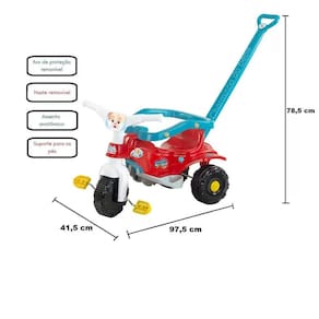Este Lindo Triciclo tem assento anatômico para melhor conforto do seu bebê, vem aro de proteção lateral e suporte para os pés, para segurança. E a haste de empurrar, são removíveis, assim, quando a criança crescer poderá alcançar os pedais e o guidão.Produto de qualidade e segurança.Benefício: É uma boa e divertida alternativa para se passear com seu filho. Auxilia no desenvolvimento de habilidades visuais, auditivas, coordenação motora e raciocínio.Dimensões Aproximadas do Produto: 78,5cm x 41,5cm x 97,5cm(Altura x Largura x Comprimento/Profundidade)Dimensões Aproximadas da Embalagem: 29cm x 40cm x 54cm(Altura x Largura x Comprimento/Profundidade)