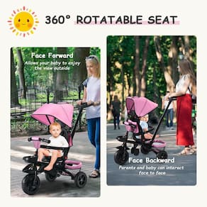 - Triciclo 7 em 1: acompanhe as crianças em diferentes estágios; vários modos: triciclo, triciclo infantil, triciclo de direção, triciclo de treinamento ou triciclo padrão e assim por diante; o assento reversível permite que as crianças apreciem a vista ou interajam com os pais