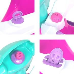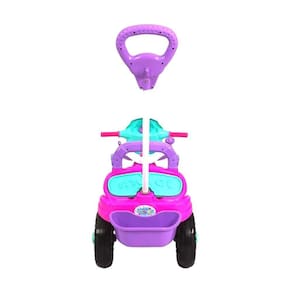 Especificações: - Material: Plástico - Medida: 65cm x 47cm - Peso: 5000 gramas - Apoio para os Pés: Sim removível - Com Haste: Sim removível - Com Apoio Lateral: Sim removível - Com Pedal: Sim removível - Com Porta Objetos: Sim - Cor: Rosa