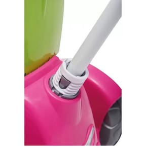 Triciclo Tate Tico Infantil Calesita Rosa Carrinho de passeio triciclo ta te tico azul Modelo 2 em 1 use por mais tempo Ao retirar os acessórios, o guidão gira e a criança pode pedalar desenvolvendo a coordenação dos movimentos. Leve e compacto mas gigante em diversão. Leve, prático e confortável O ta te tico é daqueles triciclos 2 em 1 despojados e práticos, que acompanha as fases de crescimento da criança com conforto e segurança. Na primeira fase, o apoio de pés mantém as perninhas do bebê confortavelmente apoiadas, e, a estabilidade do corpo é garantida pelo cercado de proteção, também removível. Já na fase mais independente do bebê, retira-se o apoio de pés e cercado de proteção para a diversão do passeio pedal. Pensando nessa independência para a diversão do pedal, o ta te tico foi projetado com roda dianteira acompanhada de borracha para evitar derrapar, legal né