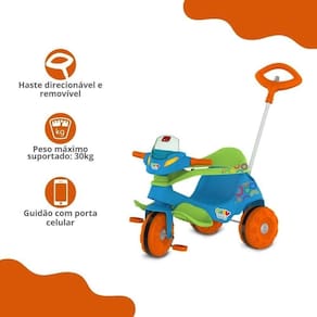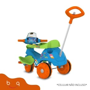 Guidão com porta celular. Inmetro Certificação: OCP IQB nº 0006 CE-BRI 05170 Cercado de proteção removível com painel de atividades.