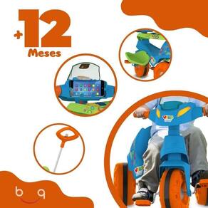 Um triciclo com duas funções, prático e moderno para o adulto e divertido para as crianças Função passeio: O adulto utiliza a haste direcionável para conduzir o triciclo. Basta colocar o cercado de proteção e o apoio dos pés. Função pedal: Permite à criança pedalar livremente como um triciclo convencional. Basta remover a haste, o cercado de proteção e o apoio dos pés.