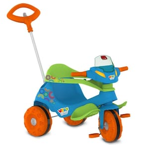 Um triciclo com duas funções, prático e moderno para o adulto e divertido para as crianças! FUNÇÃO PASSEIO: O adulto utiliza a haste direcionável para conduzir o triciclo. Basta , colocar o cercado de proteção e o apoio dos pés. FUNÇÃO PEDAL: Permite à criança pedalar livremente como um triciclo convencional. Basta remover a haste, o cercado de proteção e o apoio dos pés. Haste direcionável e removível. Rodas com anel antiderrapante. Assento anatômico. Suporte para garrafa d'água, mamadeira ou squeeze (no cercado). Apoio para os pés removível: Mantém os pés da criança apoiados confortavelmente. Suporte para bolsa/ sacola (na alça da haste). Guidão com porta celular. Cercado de proteção removível com painel de atividades. Idade: +12 meses. Peso máximo suportado: 30kg. Número do registro : 003834/2021 OCP:0061