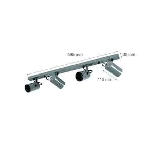 sua casa únicaPeças com design sofisticado e acabamento impecável Tudo para iluminar seu ambiente com muito charmePerfeito para todos os ambientesTrilho Spot Focus Fit - Trilho de 59,5 cm com 4 spots direcionáveis Linha: AluminiumModelo: Trilho 59cmCor es : PretoMaterial: AlumínioLuminária: 4 soquetes E27Número de lâmpadas: 4 lâmpadas não inclusas Voltagem: 127V/220VMedida: 11 x 3,5 x 59,5 cmPeso líquido: 0,800 kgConteúdo da embalagem: 1 Luminária de teto spot ---NÃO ACOMPANHA LÂMPADA---