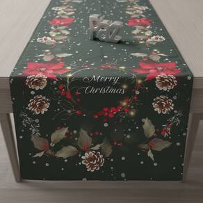 Trilho de Mesa estampa Natal Merry Christmas 1,43 x 0,46 - Verde