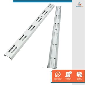 O Trilho para Prateleira Duplo é ideal para fixar suportes com encaixe duplo para as prateleiras. Pode ser utilizada na montagem de lojas, garagens, lavanderia, escritórios, salas, etc. Produzido em aço carbono e acabamento em pintura epóxi, permite que seja posto e retirado de forma rápida e fácil conforme a necessidade, e ainda é possível regular a altura das prateleiras. A quantidade de trilhos varia de acordo com o comprimento da prateleira que você planeja colocar nela.