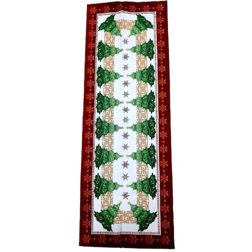 A estampa de natal do trilho é vibrante e colorida, seguindo o padrão de qualidade Lepper. Suas cores não desbotam com as lavagens e o tecido seca rapidamente, facilitando sua manutenção e conservação.