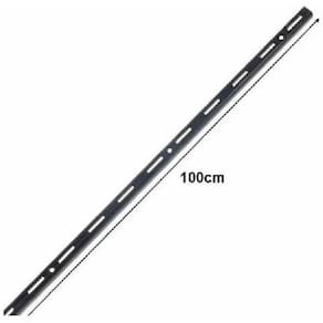 Trilho versátil cremalheira preto 100cm - Fico O Trilho Aço Versátil Preto de 100cm é um trilho médio, ideal para qualquer instalação residencial ou comercial. Permite regular a altura entre as prateleiras a cada 5cm, dando muita flexibilidade ao projeto.
