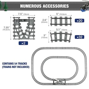 Mannidoo Trilhos de trem urbanos clássicos, 54 peças de trilhos ferroviários com 32 trilhos curvos, 20 trilhos retos e 2 trilhos de comutação, acessórios de expansão de trem compatíveis com todas as principais marcas - Conjunto ferroviário de valor imbatível: o conjunto de trilhos de trem Mannidoo inclui 54 peças (32 curvas, 20 retas e 2 interruptores). Pode ser montado em ovais ovais simples ou complexos com capacidade de alternância de trilha, permitindo que as crianças criem rotas imaginativas e promovam sua criatividade. - CERTIFICADO SEGURO - Todos os trilhos de trem urbano de 54 peças são feitos de material ABS não tóxico, garantindo que sejam livres de rebarbas e fáceis de limpar. O processo de fabricação é estritamente controlado para atender aos padrões de segurança de brinquedos dos EUA. - Jogo criativo – Os trilhos da ferrovia podem ser montados em várias combinações ou utilizados como extensões para trilhos existentes. Com diferentes tipos de faixas, seus filhos podem projetar layouts para atender às suas preferências, melhorando sua diversão na construção. Esta atividade ajuda as crianças a desenvolver habilidades práticas e consciência espacial enquanto estimula sua imaginação e criatividade. - Melhor escolha para presentes infantis – o conjunto de expansão de trilhos de trem Mannidoo é um excelente kit inicial para crianças a partir de 3 anos e é totalmente compatível com a maioria das principais marcas (Lego, com certeza), permitindo que as crianças misturem e combinem com faixas que já têm. - MANNIDOO Opção: Compare com outras marcas, estamos comprometidos em fornecer 60 dias de devolução do dinheiro por qualquer motivo e 180 dias de devolução do dinheiro para questões relacionadas à qualidade. Com Mannidoo, você pode obter trilhos de trem mais baratos, mais grossos e resistentes.