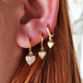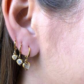 Unido a versão clássica dos acessórios, as argolinhas, e os apaixonantes detalhes da zircônia em forma de coração trazemos o trio de brincos essêncial para suas composições. Folheados em ouro 18k esses acessórios realçam sua elegância e tornam suas composições do mix pessoal de joias completos. Use como quiser e onde quiser. Independente da ocasião ou estação do ano esses acessórios são sempre bem vindos.