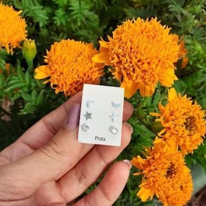 Trio de brincos de prata: estrela, lua e ponto de luz. Este anúncio é para 3 pares 6 peças . Lindo para crianças, segundo furo e terceiro furo. Consulte o logo abaixo do valor do produto. Marca: Não Informado Ean: 7892238939350