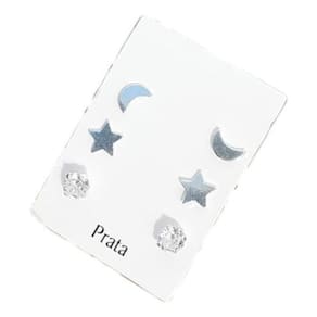 Trio de brincos de prata: estrela, lua e ponto de luz. Este anúncio é para 3 pares 6 peças . Lindo para crianças, segundo furo e terceiro furo. Consulte o logo abaixo do valor do produto.