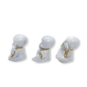 Trio Budas Cego Surdo Mudo Branco 5,5 Resina Sabedoria e Paz Esta escultura em resina trará boas energias e harmonia para sua casa, irá trazer bons fluídos. É ideal para colocar em seu altar ou completar a decoração de seu ambiente. Esculturas são itens especiais e decorativos, é um recurso que dá um toque a mais em qualquer ambiente, tem um valor espiritual e sentimental. Você pode enfeitar com um estilo próprio com muito bom gosto o seu altar ou ambiente. Aplicação: