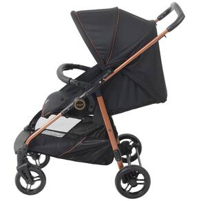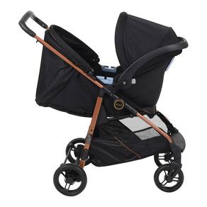 Este conjunto de carrinho e bebê conforto combina qualidade italiana, conforto ergonômico e design elegante. As rodas dianteiras giratórias com trava e os amortecedores traseiros proporcionam passeios suaves mesmo em terrenos irregulares.