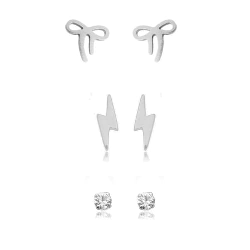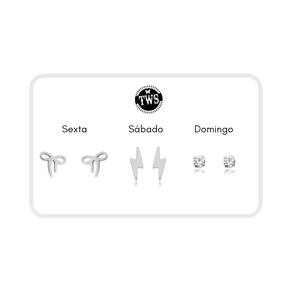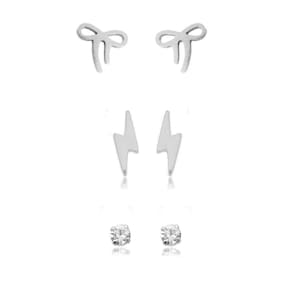 Conteúdo da Embalagem: 1 par de brincos laço 1 par de brincos ponto de luz 1 par de brincos raio