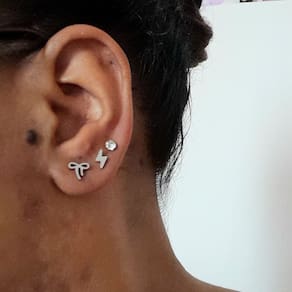 Nosso trio de brincos é a escolha perfeita para mulheres que buscam um visual moderno e sofisticado. Com um design único e versátil, ele combina a delicadeza do laço, o brilho do ponto de luz e a força do raio, criando um conjunto que se adapta a qualquer ocasião.