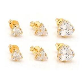 Brinco folheado a ouro com zircônia. Este anúncio é para 3 pares 6 peças . Tamanhos: coração de 6 mm triângulo de 5 mm ponto de luz de 4 mm lindo para crianças, segundo furo e terceiro furo. Consulte o logo abaixo do valor do produto. Marca: Não Informado Ean: 7892238462834