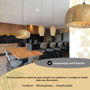 Naturais, harmônicos e muito elegantes, o Nat23 e o Nat63 fazem parte da nossa nova linha de pendentes feitos de fibra natural. Esses pendentes possuem o seu material feito com pequenas ripas de bambu, proporcionando um aconchego e beleza no seu ambiente, além de ser um material totalmente ecológico. Produtos importados fabricados na Ásia.