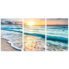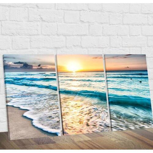 Trio de quadros decorativos canvas partido Pôr do Sol na praia MidiaPopArte Tamanho: 3 quadros 50x80 cm Trio de quadro decorativo partido impresso em tecido canvas tamanhos grandes para salas, quartos, escritórios e home office.Este quadro decorativo Abstrato em canvas para ambientes internos é ideal para salas, quartos, escritórios, home office´s, etc.Os Quadros da linha MidiaPopArte são produzidos com impressão profissional em alta definição sobre tecido canvas tecido 100% algodão na gramatura de 270 g/m² esticados em um chassi de madeira reflorestada, tratada e imunizada de 3 a 4 cm de espessura.Nossas impressões de arte têm imagens nítidas em alta resolução. Valorize e decore seu ambiente com nossos lindos quadros decorativos.As laterais da tela são recobertas com o próprio canvas impresso criando a sensação de continuidade de imagem. A tela vai pronta para pendurar na parede bastando utilizar pregos ou parafusos no local desejado.Para a garantia do produto, os cuidados abaixo devem ser observados:Tipo de impressão: Impressão digital em altíssima definição em tela canvasAcabamento: Acabamento em verniz UVEstrutura: Chassis na espessura entre 3,5 a 4 cmEmbalagem: Plástico bolha e Papelão MicroonduladoMarca: MidiaPopArte CUIDADOS COM O PRODUTOEste produto deve ser utilizado apenas em ambientes internos;Para limpeza utilize apenas um pano seco ou espanador;Não exponha o produto em paredes com sinais de umidade ou sobe luz direta do sol;Os objetos ou móveis utilizados nas imagens dos ambientes são apenas ilustrativos e não acompanham o produto;As cores dos quadros podem sofrem variações dependendo da resolução e configuração do seu monitor;As imagens dos quadros nos ambientes são meramente ilustrativas e não configuram a real dimensão do produto;Não nos responsabilizamos pela montagem ou instalação do produto. CONSIDERAÇÕES IMPORTANTES1. Se eu não gostar do produto posso devolvê-loA MidiaPopArte garante a devolução do produto dentro de um prazo de 7 dias corridos contados a partir da data de recebimento. 2. Os quadros decorativos em canvas MidiaPopArte acompanham moldurasNão, os quadros são esticados em chassis de madeira reflorestada com a espessura de 3,5 e 4 cm que garantem um acabamento diferenciado e uma estrutura bastante resistente. 3. Como fixar o quadro na paredeRecomendamos que o quadro seja fixado na parede com parafusos e buchas de 8.