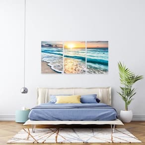 Trio de quadros decorativos canvas partido Pôr do Sol na praia MidiaPopArte